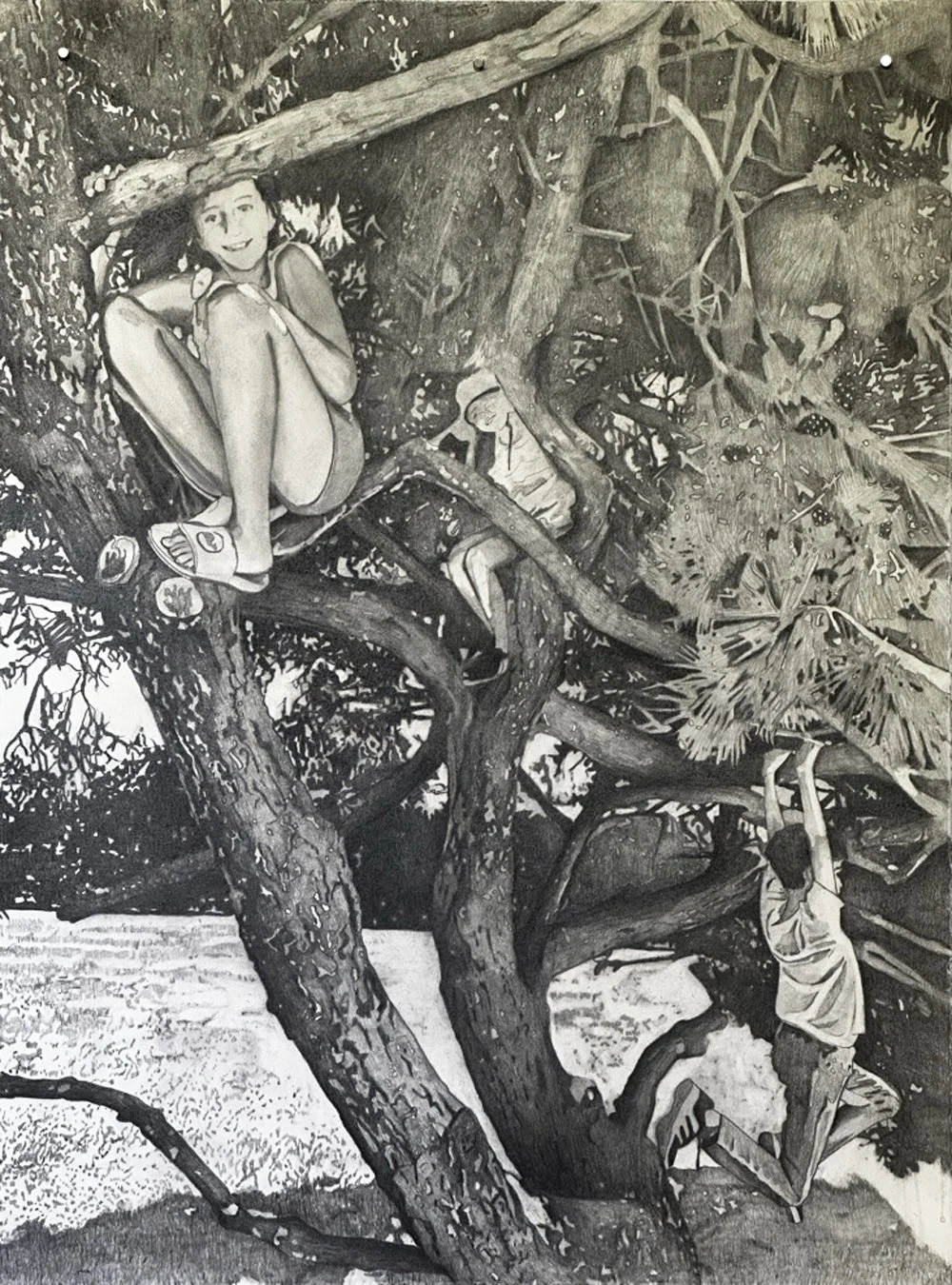 Untitled (Children in Tree) 30x22" Graphite on paper